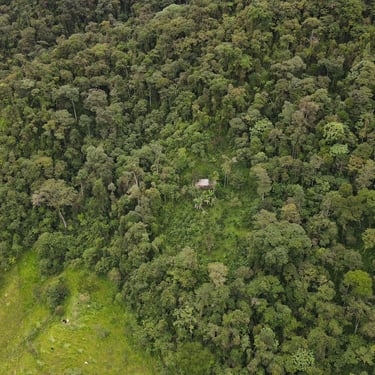 Pequeña finca llena de vegetación y fauna silvestre